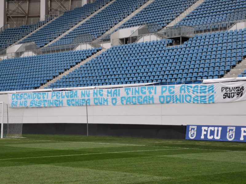 Membrii Peluzei Sud 97 au pus și un banner în interiorul arenei, acolo unde la Peluza Sud a stadionului Ion Oblemenco  au crecut de micii copiii, la el ca și părinții lor,  iar pe acesta se putea citi următorul mesaj:  „Deschideți Peluza, nu ne mai țineți pe afară, să ne susținem echipa cum o făceam odinioară”